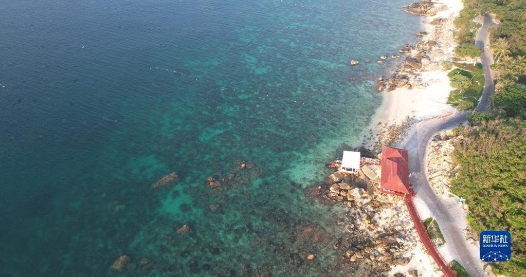 這是5月18日拍攝的海南三亞蜈支洲島海域海洋牧場(chǎng)(無(wú)人機(jī)照片)。