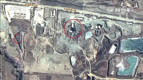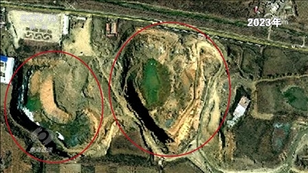 這兩個(gè)大坑真的如這位負(fù)責(zé)人所說變化不大嗎?記者查閱了從2018年至今的衛(wèi)星圖片,上面清晰顯示:2018年,北面大坑上面原來有廠房,還有道路,南面是一個(gè)尾礦庫。2019年,地塊南北同時(shí)出現(xiàn)新挖的坑,之后這兩個(gè)坑不斷擴(kuò)大。到了2020年,北面的廠房已經(jīng)不見了,南面的坑也在變大。2021年、2022年,兩個(gè)大坑都在變大變深,逐漸靠攏,到了2023年,最終形成了現(xiàn)在的樣子。