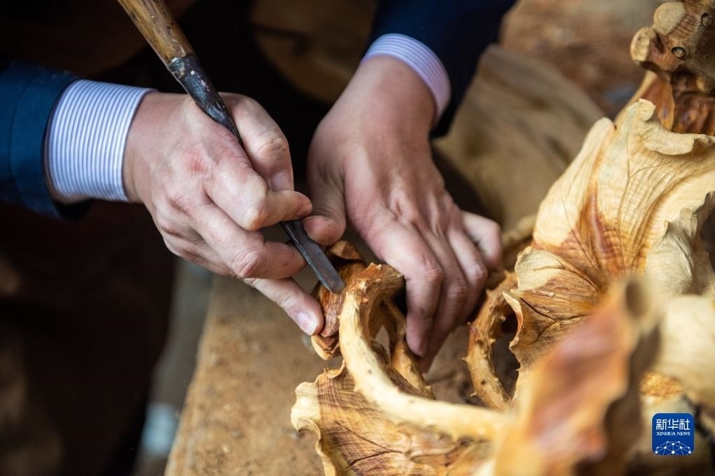 洞口木雕已被正式列入湖南省省級(jí)非物質(zhì)文化遺產(chǎn)名錄,木雕產(chǎn)品遠(yuǎn)銷(xiāo)70多個(gè)國(guó)家和地區(qū)。新華社記者 陳思汗 攝