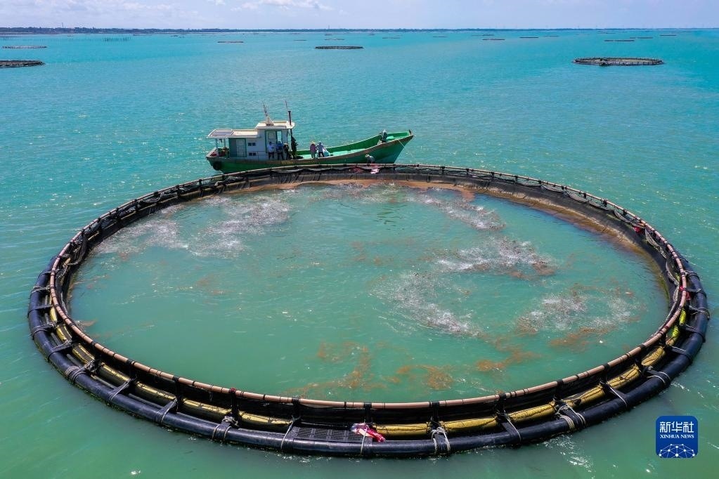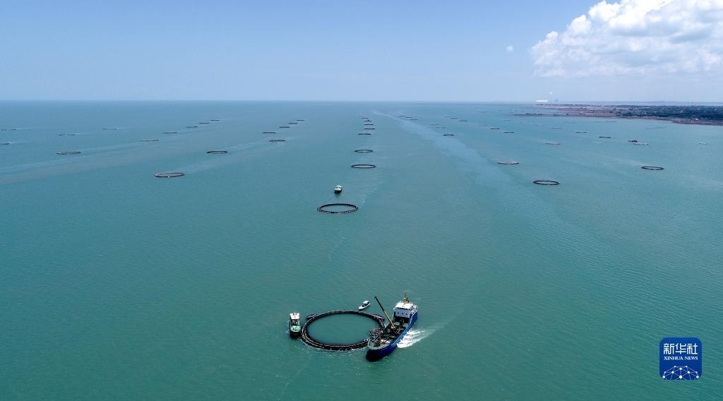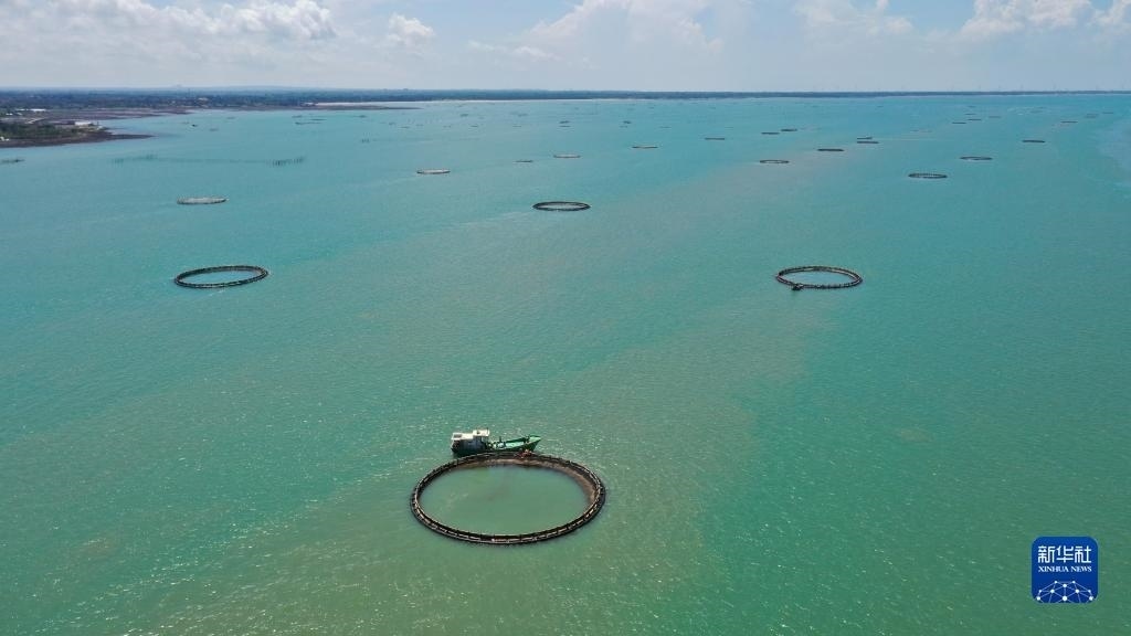 湛江徐聞西連鎮(zhèn)的“海上牧場”(5月27日攝,無人機(jī)全景照片)。