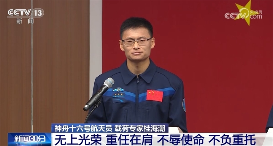 神舟十六號航天員 載荷專家桂海潮:作為載荷專家,我主要負責載荷的管理、維護、維修,從事空間科學實驗,包括實驗設(shè)備操作,實驗條件控制,數(shù)據(jù)收集、整理和分析。盡管我們乘組有分工,但我們是分工不分家,每一項操作,每一項任務(wù),我們都互為備份,共同完成。相信在指令長的帶領(lǐng)下,在我們乘組的密切配合下,在廣大航天人的支持下,我們一定能圓滿完成使命。