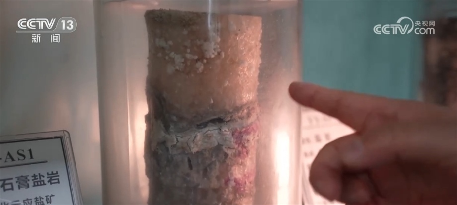 中國(guó)科學(xué)院武漢巖土力學(xué)研究所研究員 中國(guó)工程院院士 楊春和:這是我們從全國(guó)各地采回來(lái)的從800米到2000米不等深度下的巖心,上面你看這一塊是鹽,這么一點(diǎn)小薄的夾層是含泥的,這種夾層的界面是否會(huì)產(chǎn)生泄漏、對(duì)垮塌是否有影響。