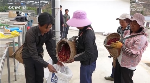 當(dāng)我們來到云南保山時(shí),正趕上小粒咖啡采摘季的尾聲。因?yàn)槟壳安煽Х戎荒芸咳斯ぃ悦康讲烧?,這片咖啡園的主人番啟佐就要雇上百名村民前來幫忙,這也給大家創(chuàng)造了增加收入的機(jī)會(huì)。