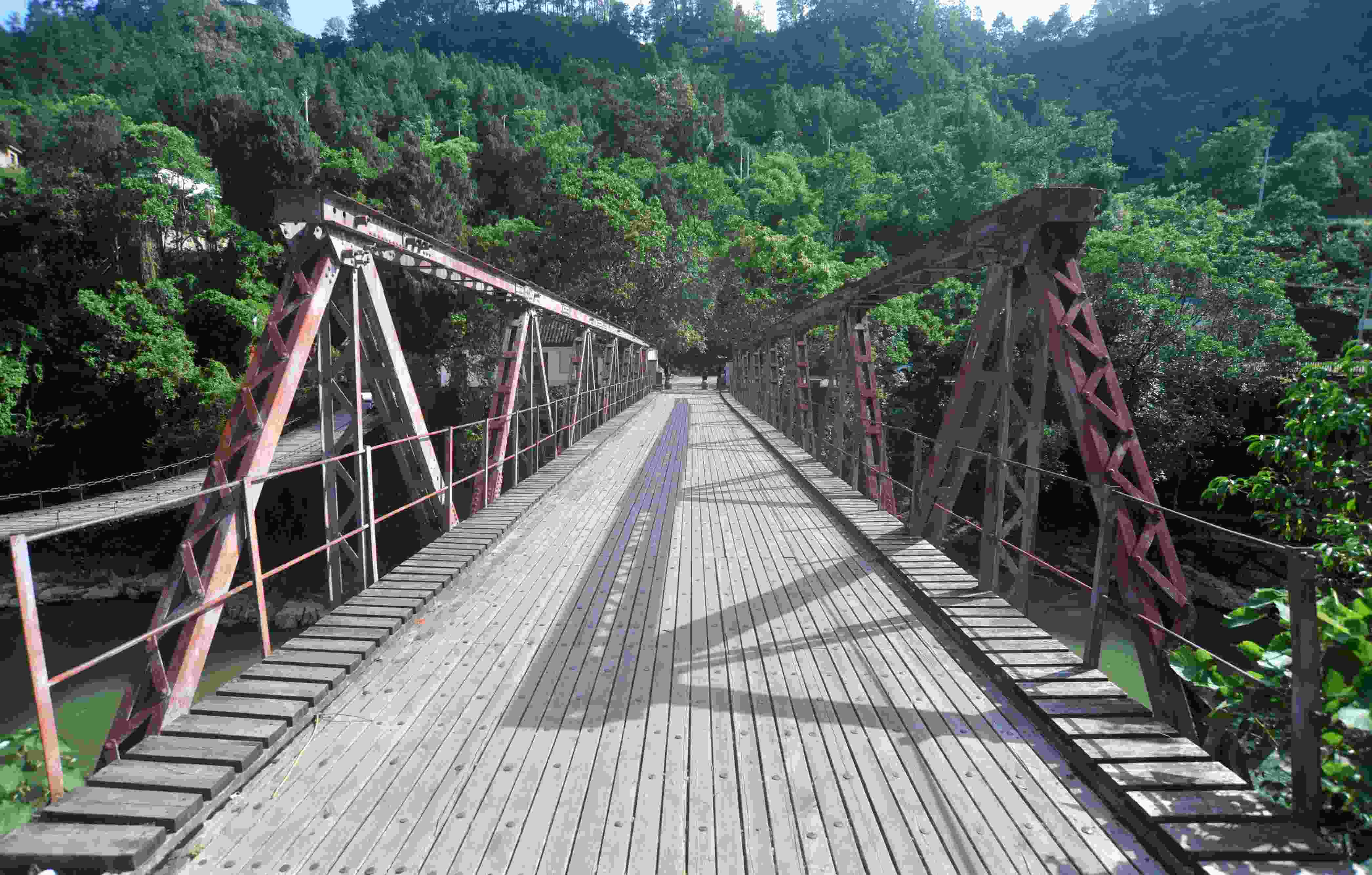 “三朝橋”坐落在貴州黔東南苗族侗族自治州黃平縣重安鎮(zhèn)重安江江面上,三橋間距不足50米。最南邊的鐵索橋修建于清同治十二年,橋長(zhǎng)36.5米,有鐵索19根。中間橋修建于1938年抗戰(zhàn)時(shí)期,為石墩鋼梁構(gòu)結(jié)公路橋,設(shè)計(jì)者是茅以升。第三座橋?yàn)殇摻罨炷燎皹颍?994年始建,目前仍正常使用?!叭瘶颉笔琴F州交通歷史變遷的見(jiàn)證,有“中國(guó)橋梁博物館”之稱。 (寧堅(jiān) 趙軍)
