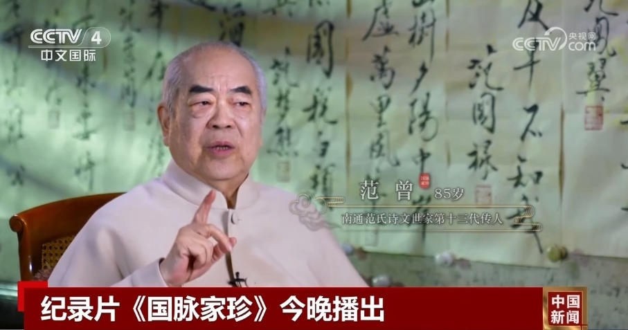 紀(jì)錄片《國(guó)脈家珍》從南通范氏詩(shī)文世家第十三代傳人范曾的視角,還原家族成員個(gè)性鮮明、造詣深厚的傳奇故事。他們或居于廟堂,持守高風(fēng)峻節(jié),或隱于江湖,揮灑豪詩(shī)雄文,呈現(xiàn)“國(guó)運(yùn)與家事榮辱相伴,時(shí)局與詩(shī)筆悲喜相連”的人物命運(yùn)。該片結(jié)合歷代傳人的詩(shī)文,反映中國(guó)傳統(tǒng)文化綿延不息,展現(xiàn)范氏家族家風(fēng)家教的細(xì)節(jié),探尋其延續(xù)的密碼。