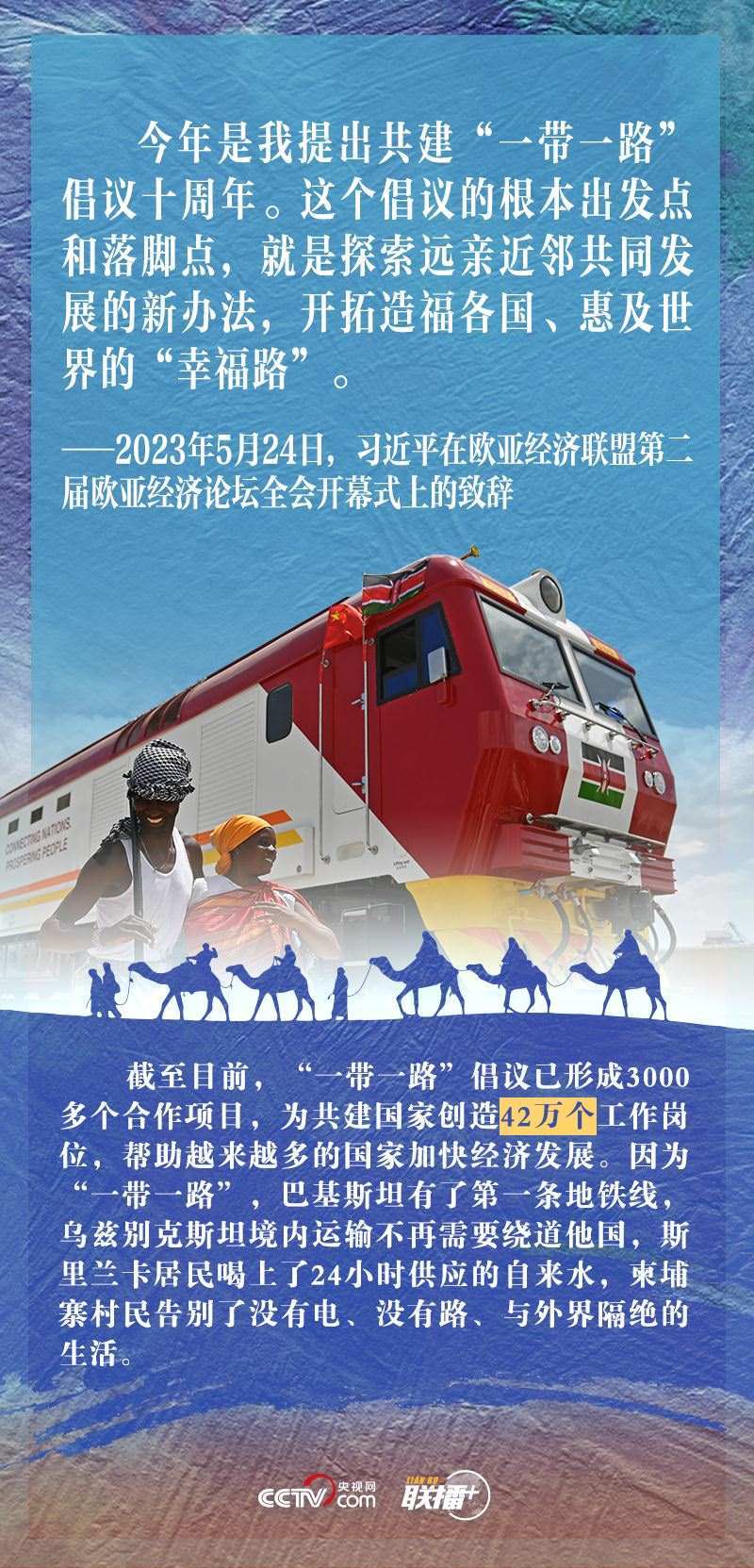“今年是我提出共建‘一帶一路’倡議十周年。這個(gè)倡議的根本出發(fā)點(diǎn)和落腳點(diǎn),就是探索遠(yuǎn)親近鄰共同發(fā)展的新辦法,開拓造福各國(guó)、惠及世界的‘幸福路’?!?月24日,習(xí)近平主席在出席歐亞經(jīng)濟(jì)聯(lián)盟第二屆歐亞經(jīng)濟(jì)論壇全會(huì)開幕式并致辭時(shí)指出。