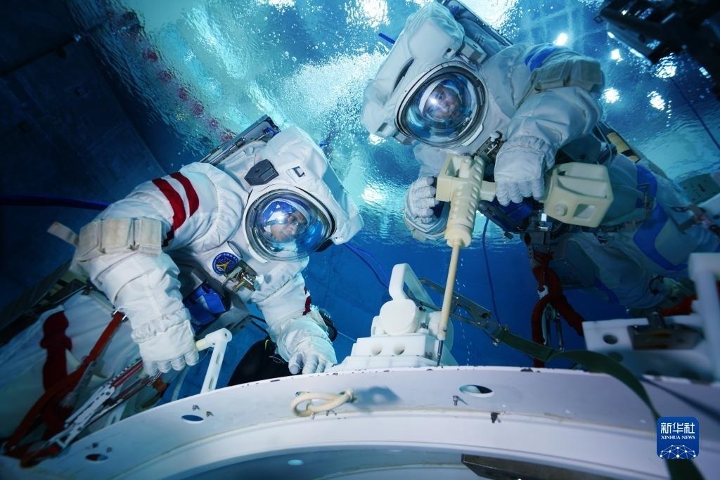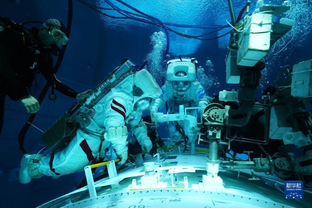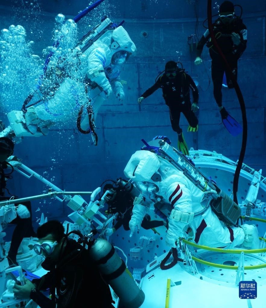 神舟十六號航天員在進行水下訓(xùn)練(2022年9月14日攝)。新華社發(fā)(徐部 攝)