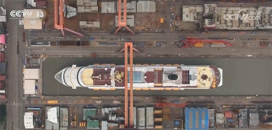據(jù)了解,下一步郵輪將在船塢內(nèi)進行多項試驗,完成出塢前的最后準備工作。