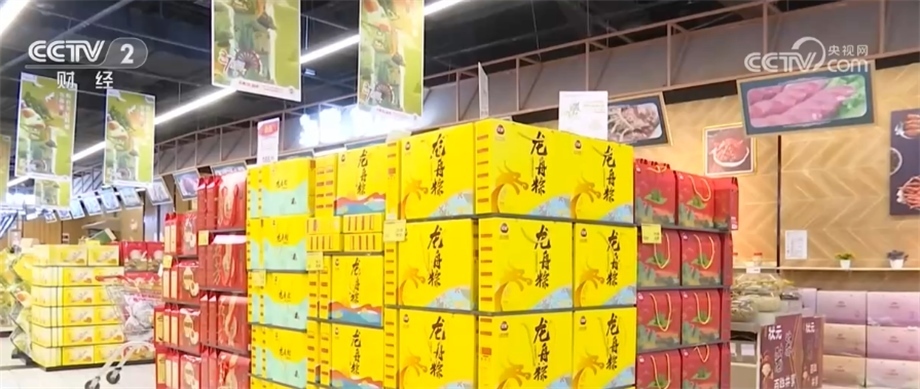 江蘇南京某超市食品銷售部經(jīng)理 周雯:今年各品牌推出了大黃米粽,它跟之前的粽子相比比較軟和比較糯,端午前兩周和前一周是高峰期,端午當(dāng)天會(huì)是銷售的峰值。