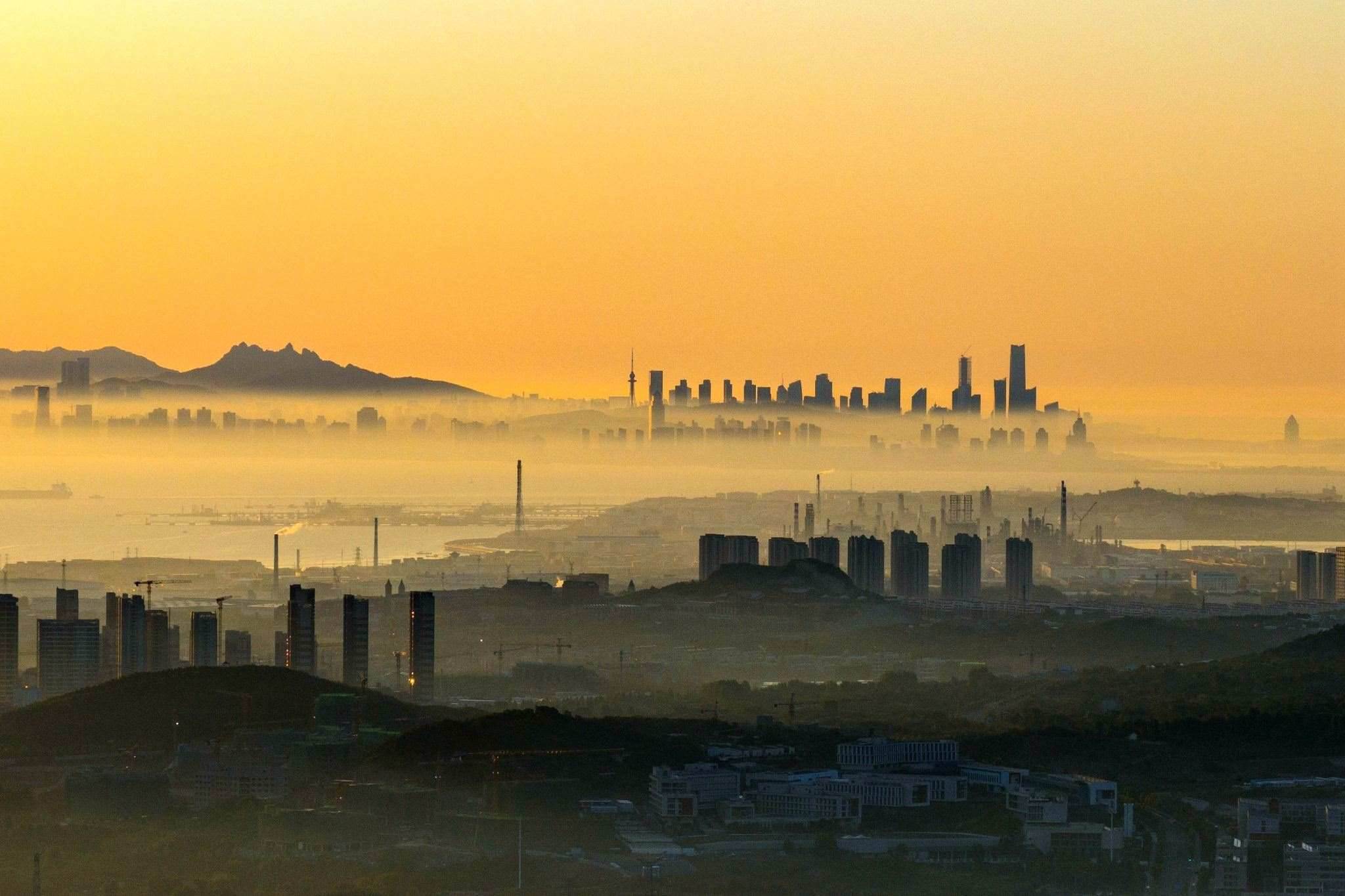 2023年6月3日,青島,膠州灣畔晨景如畫。視覺(jué)中國(guó)