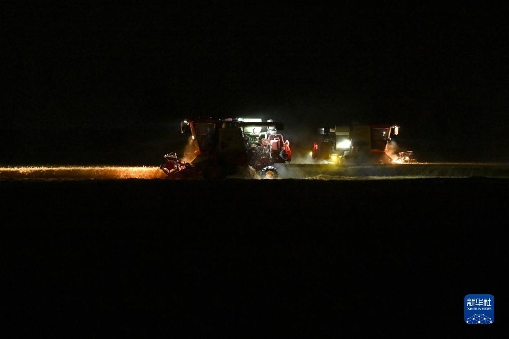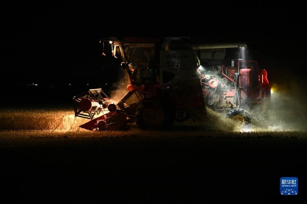 據(jù)氣象部門預報,6月3日夜間至5日,夏糧主產省安徽將迎來一次降水過程。當前正值安徽省小麥搶收關鍵時期,不少地方挑燈夜戰(zhàn)搶收小麥,力保小麥顆粒歸倉。記者從安徽省農業(yè)農村廳了解到,截至6月2日,安徽已收獲小麥面積1632.1萬畝,麥收進度為38%。新華社記者 趙金正 攝