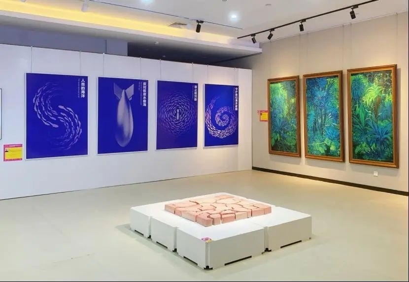 本次展覽以油畫、版畫、國畫、影像、雕塑、裝置藝術(shù)以及創(chuàng)新設(shè)計等多種形式,回應(yīng)著藝術(shù)家們對于“生態(tài)流變”這一意象與內(nèi)涵的理解,以及對“環(huán)境共生”這一問題的思考與探索。