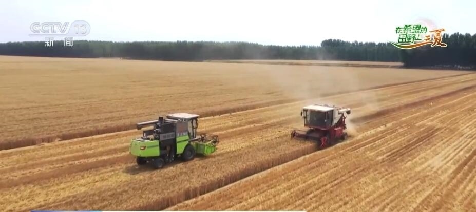 總臺央視記者 邵海成:我現(xiàn)在是在河南省西平縣,我身后是1萬多畝的小麥良種基地。當?shù)卣{集10臺大馬力收割機參與小麥種子的搶收,每小時收割小麥400多畝。