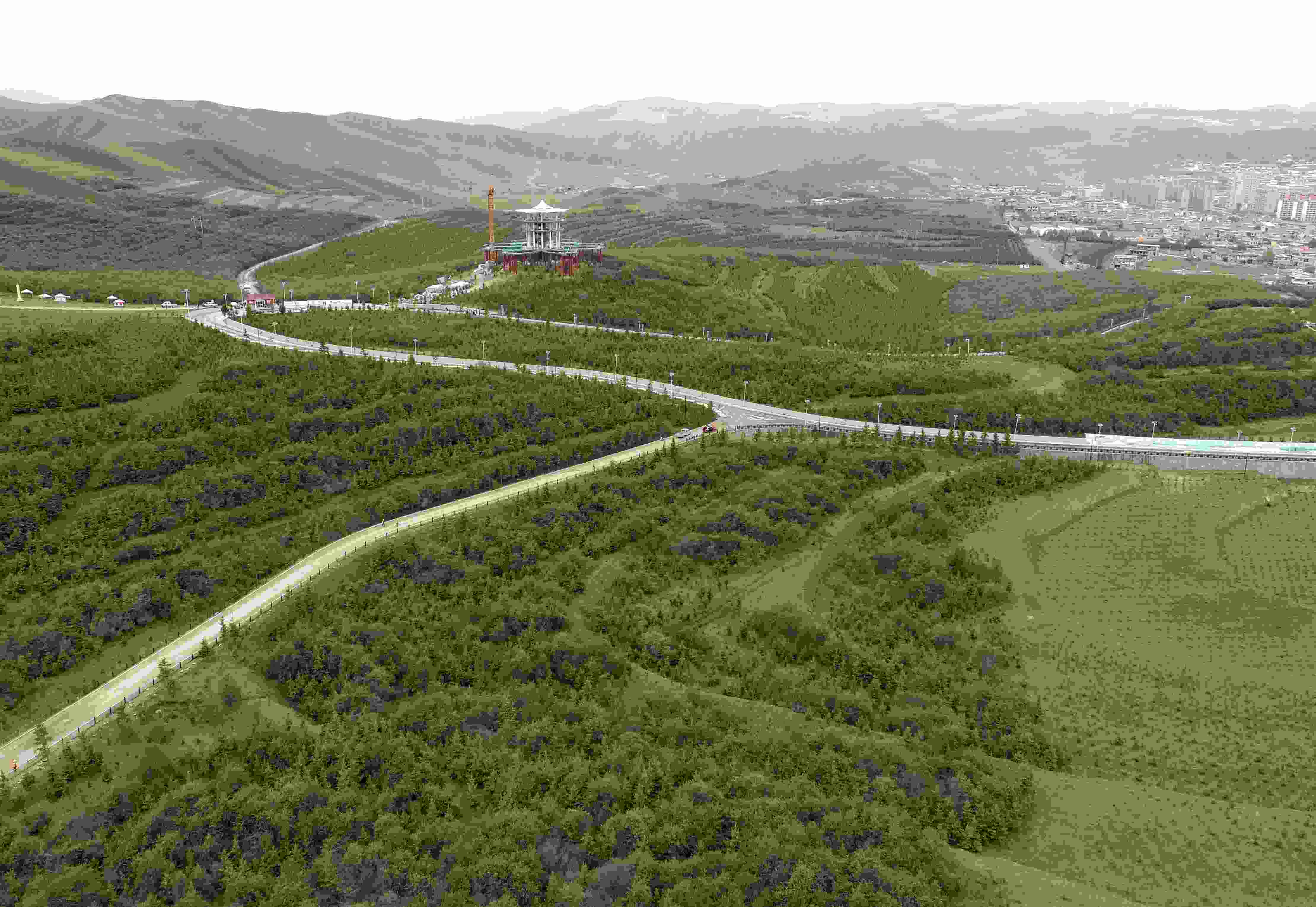 6月5日拍攝的位于甘肅省甘南藏族自治州首府合作市的錄豆昂綠化基地。 張進剛 攝
