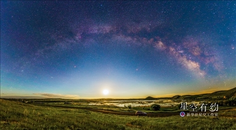 北京市天文攝影愛好者盧書培2017年7月30日在內(nèi)蒙古錫林郭勒盟正藍旗桑根達來鎮(zhèn)拍攝的銀河和“夏季大三角”。(本人供圖)