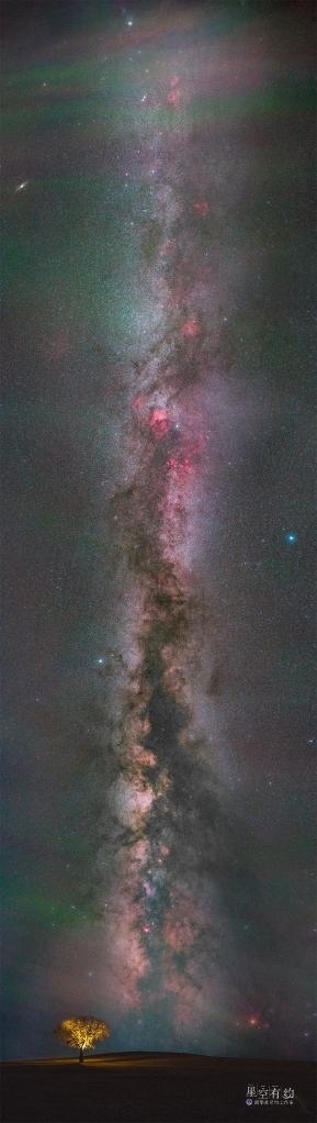 銀河,看起來像一條白茫茫的亮帶,這個季節(jié)天一黑,就能在東南方向看到它最亮的部分,并隨著時間推移越升越高,直至黎明前從東北向西南方向“劃開”整個天空。