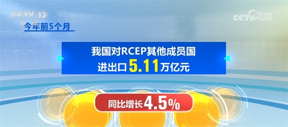 隨著區(qū)域經濟交往不斷互聯互通,我國對《區(qū)域全面經濟伙伴關系協(xié)定》(RCEP)其他成員進出口穩(wěn)定增長,今年前5個月,我國對RCEP其他成員國進出口5.11萬億元,同比增長4.5%,RCEP占我國外貿比重超過30%。