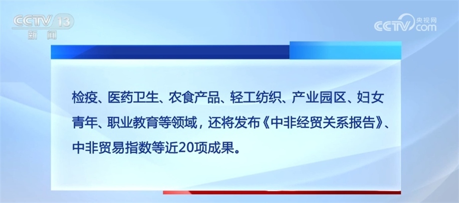 會期內(nèi)將舉辦開幕式暨中非經(jīng)貿(mào)合作論壇,9場由國家部委和機構主辦的高端活動、7場經(jīng)貿(mào)對接、3場專題研討和13場地方專場活動,涵蓋綠色基建、海關檢疫、醫(yī)藥衛(wèi)生、農(nóng)食產(chǎn)品、輕工紡織、產(chǎn)業(yè)園區(qū)、婦女青年、職業(yè)教育等領域,還將發(fā)布《中非經(jīng)貿(mào)關系報告》、中非貿(mào)易指數(shù)等近20項成果。