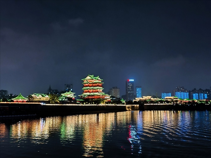 央視網(wǎng)消息(記者/楊雯珺):6月13日晚,南昌贛江兩岸點(diǎn)亮“一江兩岸燈光秀”,“e法治網(wǎng) 同心同行”的主題宣傳標(biāo)語在南昌地標(biāo)建筑綠地雙子塔滾動(dòng)播放。兩岸燈火璀璨,助力全社會(huì)網(wǎng)絡(luò)普法的宣傳氛圍。