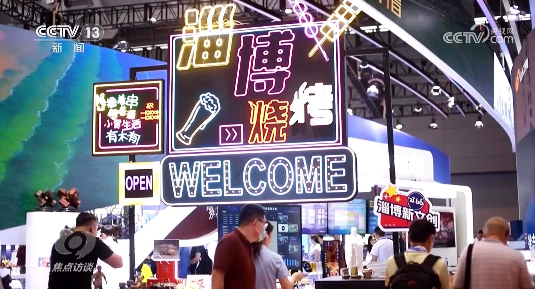 要說本次文博會最吸引人的展位,淄博燒烤算一個??墒牵瑹驹趺催M了文博會?原來,這是一個2.8米長的軟陶泥塑微縮景觀,生動還原了淄博燒烤的現實場景。此外,展臺上的琉璃燒烤大餐也吸引了不少人拍照打卡。當然,現場還是有可以吃的美食——大名鼎鼎的山東煎餅。