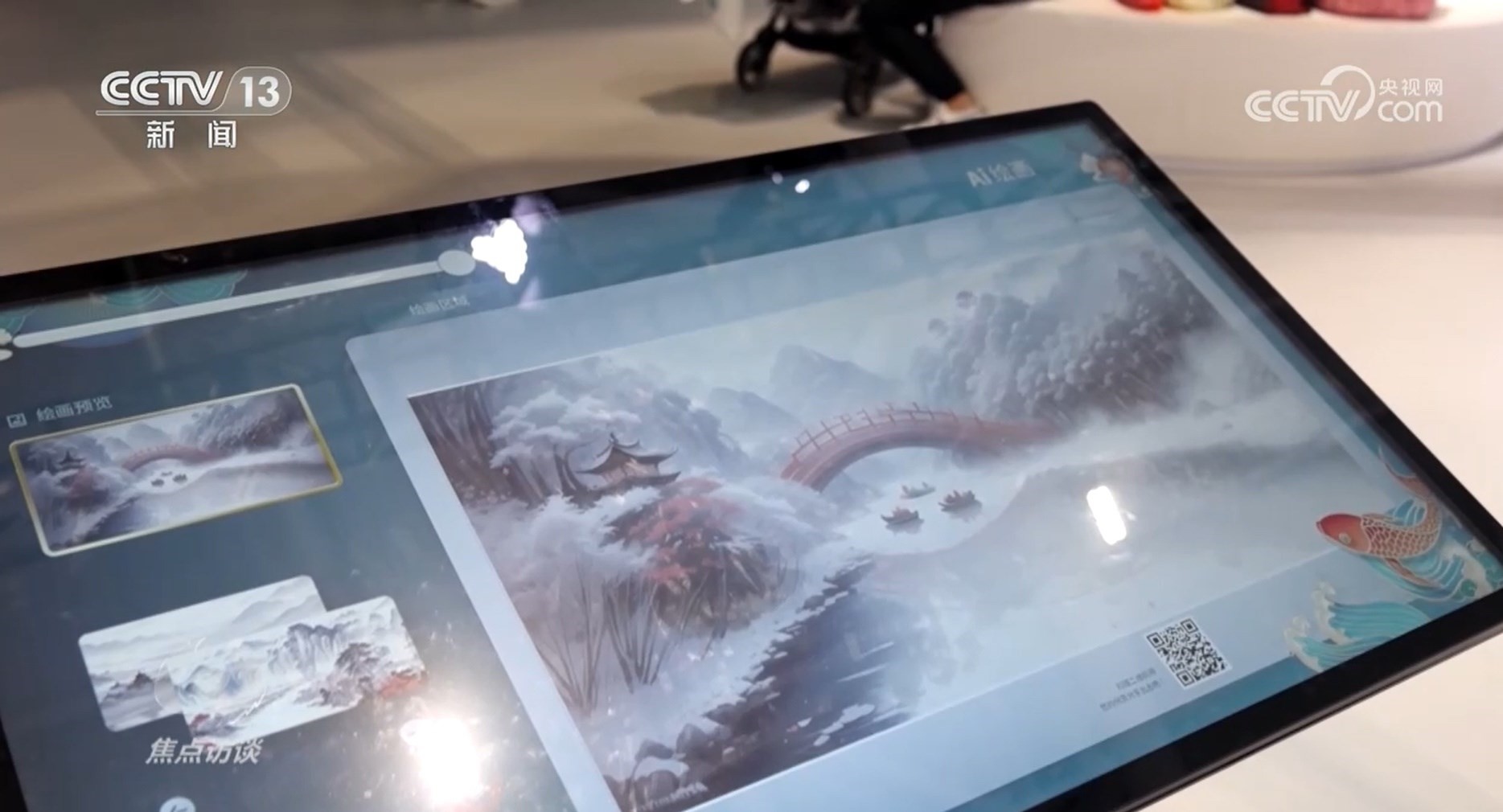 體驗一把AI繪畫是很多觀展小朋友的愿望,從一名繪畫小白變成國畫大師需要多久?文博會給我們的答案是5秒。深圳某科技公司剛剛研發(fā)出的AI作畫機,根據用戶畫出的圖案不斷進行造型演變,展開豐富聯想最終創(chuàng)作合成出國風山水畫作。