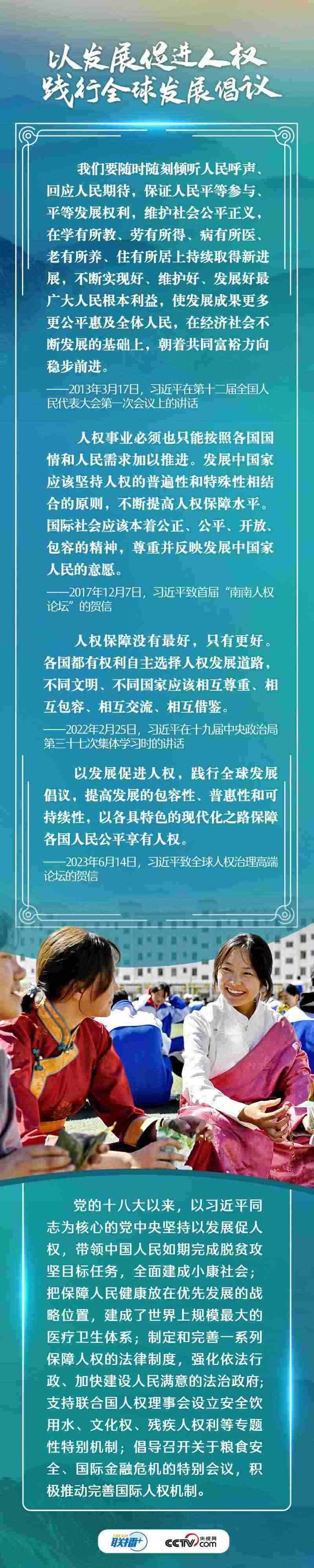 6月14日,習(xí)近平主席向全球人權(quán)治理高端論壇致賀信強調(diào),中國堅持人民至上,堅持走順應(yīng)時代潮流、適合本國國情的人權(quán)發(fā)展道路,在推進中國式現(xiàn)代化的進程中不斷提升人權(quán)保障水平,促進人的自由全面發(fā)展。