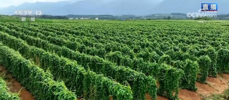 央視網(wǎng)消息: 當(dāng)下,在廣西賀州市富川瑤族自治縣,上萬畝的淮山正陸續(xù)進(jìn)入營養(yǎng)生長期,村民們忙著開展各種管護(hù)工作??偱_(tái)記者廖汨就正在富川的一個(gè)淮山種植基地,馬上來連線她。
