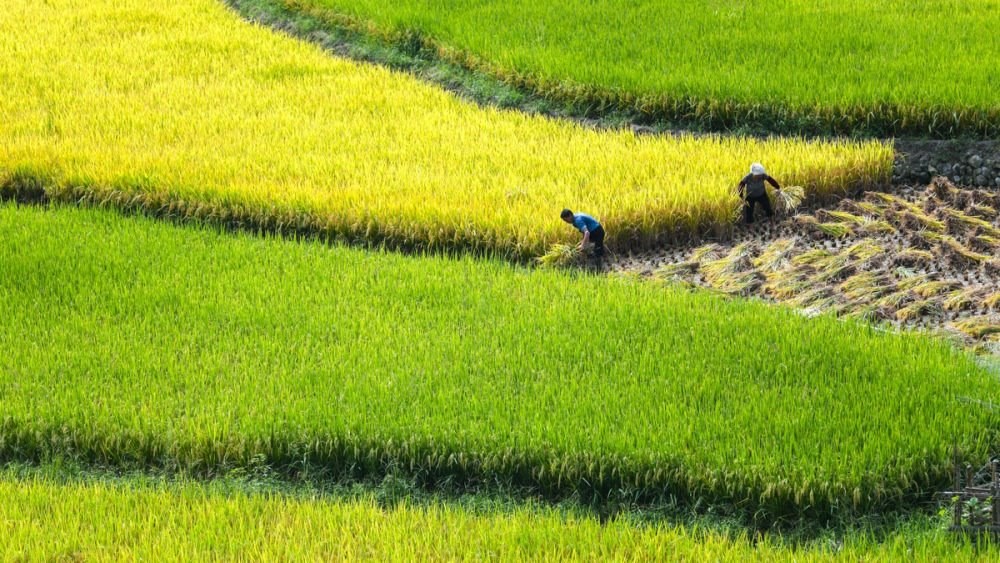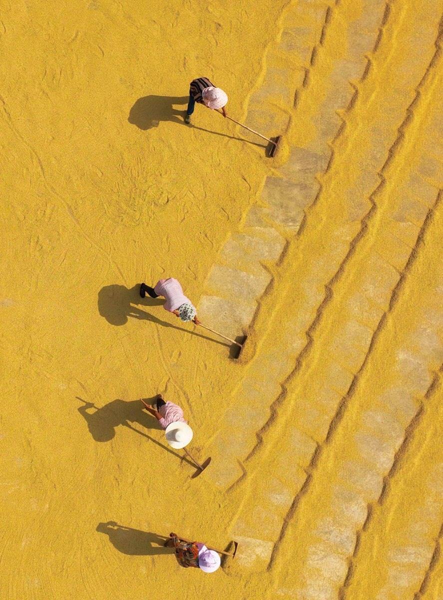 金秋時(shí)節(jié),全國(guó)各地陸續(xù)進(jìn)入收獲季,農(nóng)民搶抓農(nóng)時(shí)收獲晾曬,田間一派喜人的豐收?qǐng)D景。