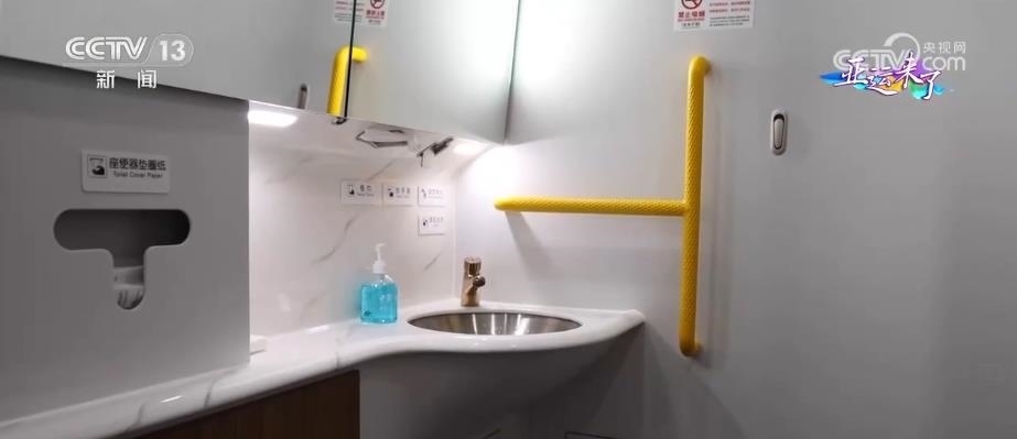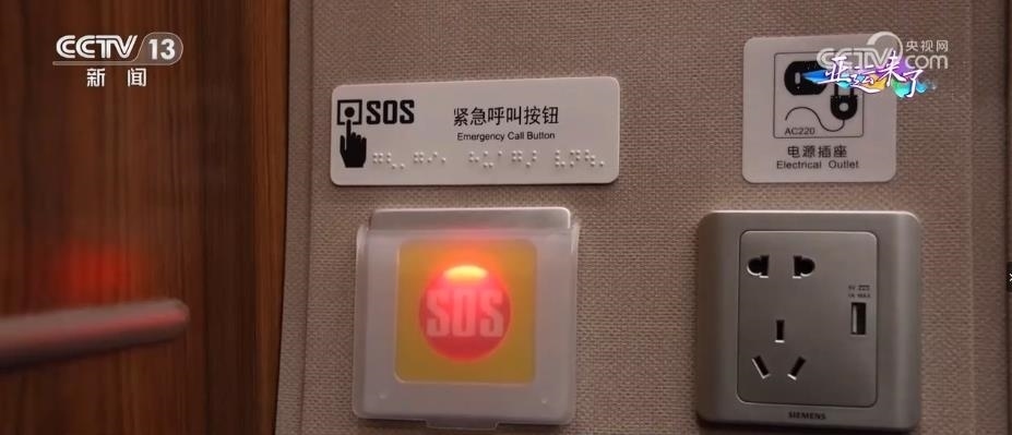 動(dòng)車組的4號(hào)車廂為無障礙車廂,有無障礙衛(wèi)生間、輪椅存放區(qū),還有盲文標(biāo)識(shí)以及相應(yīng)的設(shè)施設(shè)備,為乘客提供無障礙出行服務(wù)。