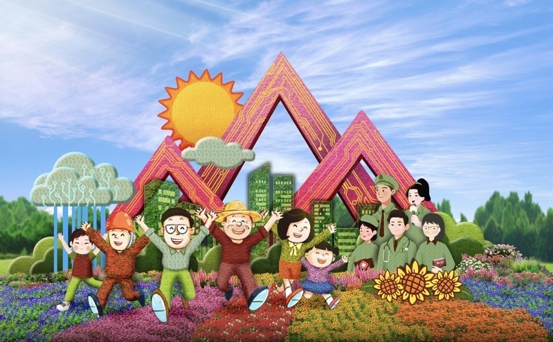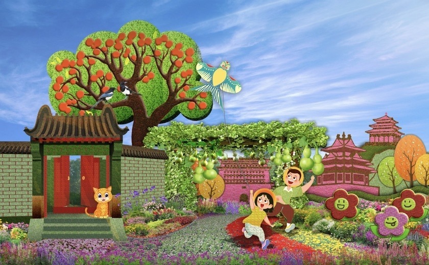 4,東單西北角的“和諧共生”花壇頂高8.5米,“三北工程”綠色長(zhǎng)城為主景,配以野馬(西北)、麋鹿(華北)、白鶴(東北)、胡楊等典型物種,體現(xiàn)了生態(tài)治理的典范,寓意堅(jiān)定不移走好人與自然和諧共生的中國(guó)式現(xiàn)代化之路。