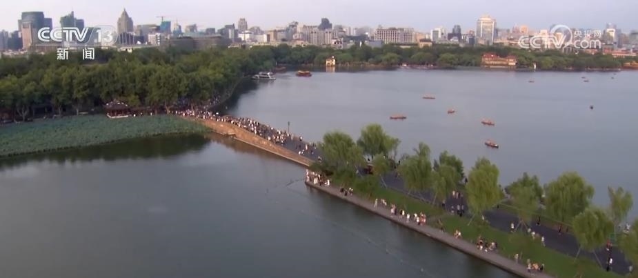 總臺(tái)記者 梁燁:說(shuō)到浙江杭州,很多人第一印象就是西湖。雷峰塔是西湖南邊的最高塔,站在這里可以從南向北俯瞰到杭州西湖的全貌。