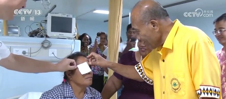 任務過程中,共有37名患者完成眼疾手術重見光明。這是一名受白內障困擾接近10年的基里巴斯居民,聽到“和平方舟”能開展白內障手術的消息,他在家人的陪伴下第一時間來到“和平方舟”眼科診室。中國醫(yī)生為其制定了全流程、精準化的診療方案,讓她重見光明。
