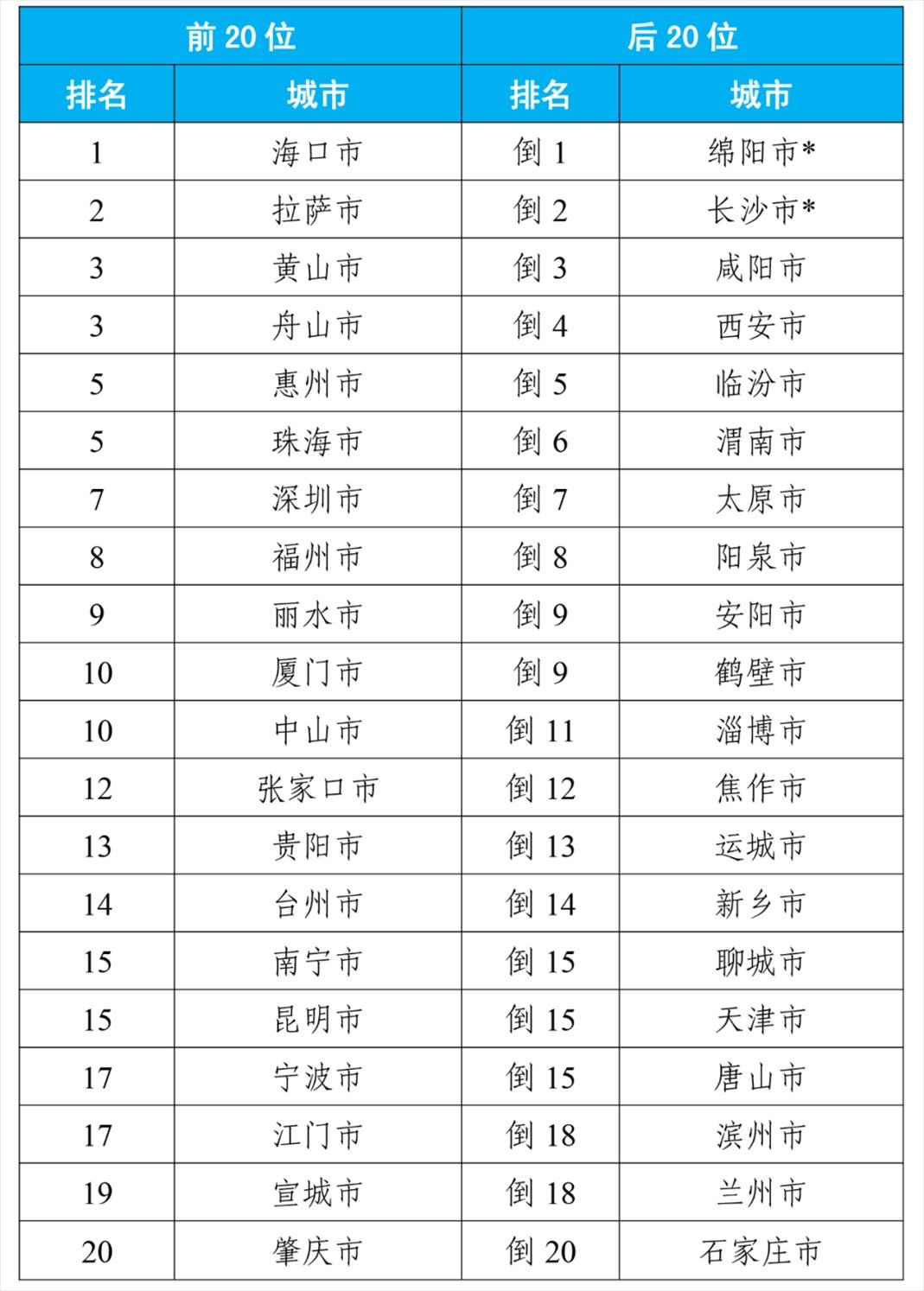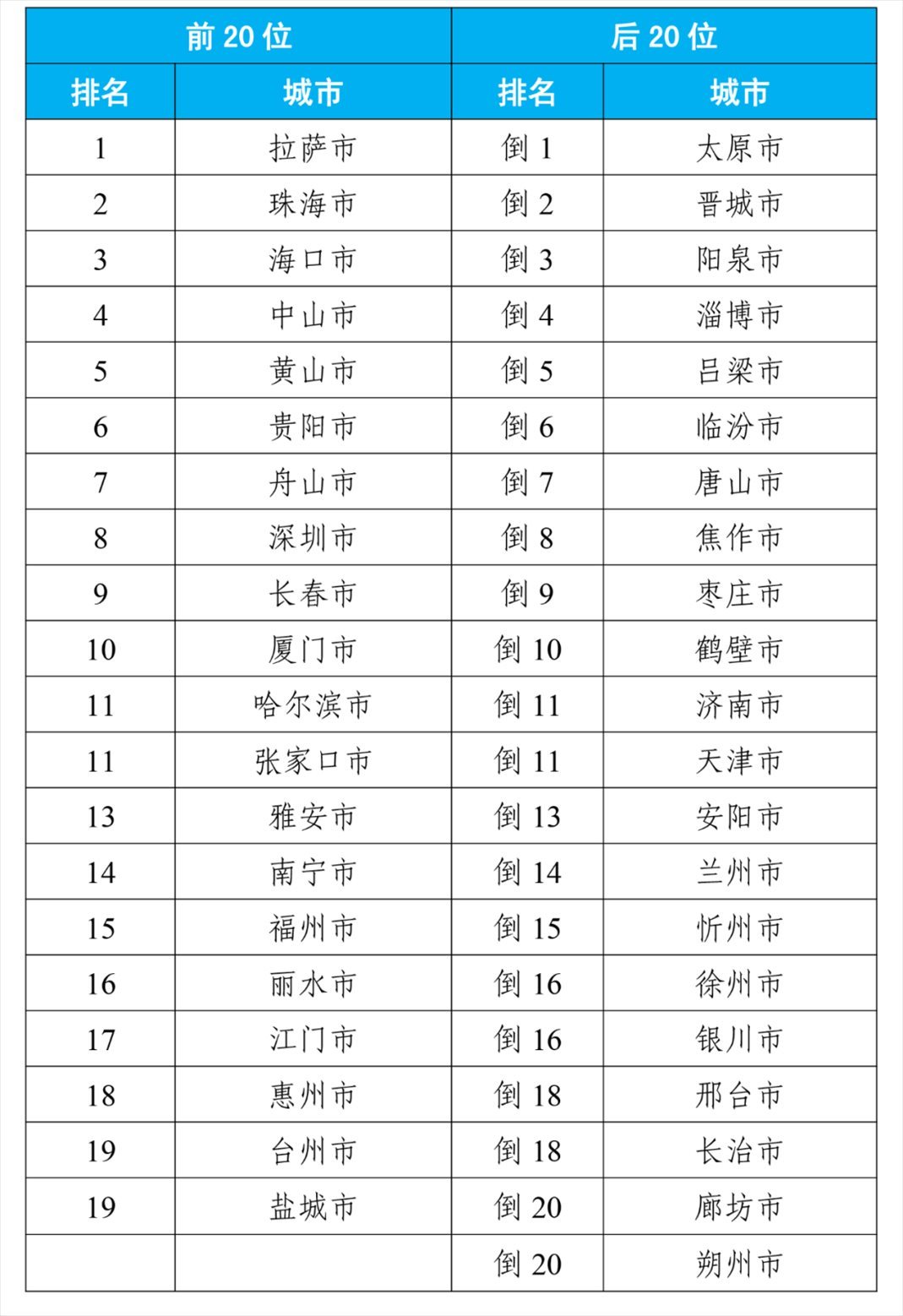 8月,168個(gè)重點(diǎn)城市中,空氣質(zhì)量排名前20位城市依次是拉薩、珠海和??诘瘸鞘校◤牡?名至并列第19名);空氣質(zhì)量排名后20位城市依次是太原、晉城和陽(yáng)泉等城市(從倒數(shù)第1名至并列倒數(shù)第20名)。見(jiàn)附表1。
