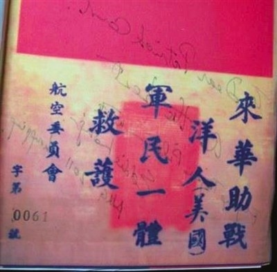當時,每名飛虎隊隊員走向戰(zhàn)機時,都深知自己或許永不能返航。他們身上都帶著寫有“來華助戰(zhàn)洋人,軍民一體救護”的“血符”,這也是飛虎隊隊員與中國軍民之間的生死契約,一旦發(fā)現(xiàn)有落難的美軍飛行員,大家會不惜代價,全力救助。