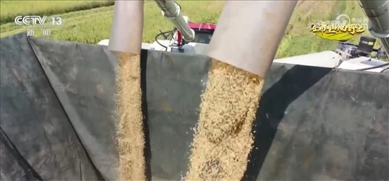 在宜春高安市上湖鄉(xiāng)上湖村,大面積水稻也正在收割中,機(jī)械化作業(yè)提高了效率,一株株水稻脫粒后,從收割機(jī)倉門傾瀉而下。