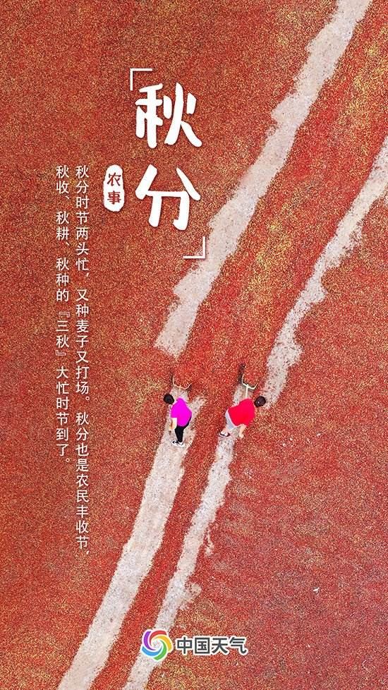 “秋分時節(jié)兩頭忙,又種麥子又打場?!鼻锓旨纫馕吨S收的喜悅,也是耕種的標(biāo)志。此時正是秋收、秋耕和秋種的“三秋”生產(chǎn)期,需重點防范初霜凍、華西秋雨、寒露風(fēng)、大霧等天氣對農(nóng)業(yè)生產(chǎn)方面可能造成的不利影響。