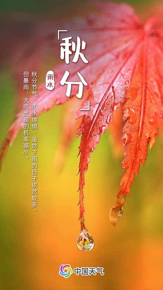 秋分時節(jié),南下的冷空氣與逐漸衰減的暖濕空氣相遇,易產(chǎn)生降水,如西南等地秋雨正當(dāng)時。雖然下雨的日子依然較多,但暴雨、大雨出現(xiàn)的機率減小。