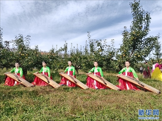 蘋果梨樹下的演奏 ?黃維攝/新華網發(fā)