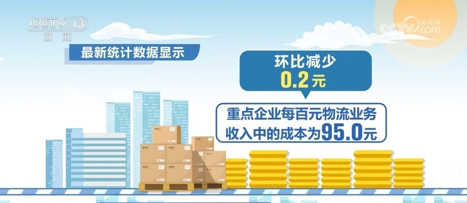 據(jù)介紹,近期,上游原材料價(jià)格趨緩,物流企業(yè)經(jīng)營(yíng)成本壓力略有緩解。最新統(tǒng)計(jì)數(shù)據(jù)顯示,重點(diǎn)企業(yè)每百元物流業(yè)務(wù)收入中的成本為95.0元,環(huán)比減少0.2元。