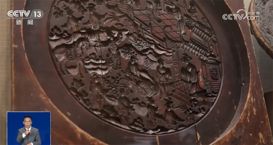 總臺記者 羅子瑛:瞧,我發(fā)現(xiàn)的這塊月餅?zāi)>咦龀鰜淼脑嘛炛睆侥軌蜻_到五六十公分,上面雕刻的花紋記錄了一位新科狀元回家為母親祝壽的場景。可以說月餅這樣一種食物,是用最樸素的方式記錄了人們的美好生活。