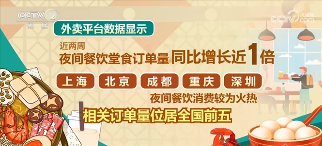 亞運(yùn)會期間,杭州還將組織多場亞洲美食主題活動、推薦500家亞洲美食季餐廳,預(yù)計拉動500億元消費(fèi)。外賣平臺數(shù)據(jù)顯示,近兩周,夜間餐飲堂食訂單量同比增長近1倍。其中,上海、北京、成都、重慶、深圳的夜間餐飲消費(fèi)較為火熱,相關(guān)訂單量位居全國前五。