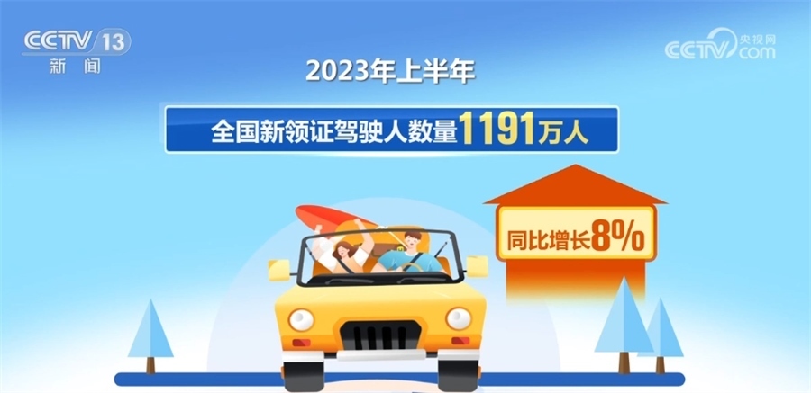在駕駛人數量方面,截至6月底,全國機動車駕駛人數量達5.13億人,其中,汽車駕駛人數量為4.75億人,占駕駛人總數的92.7%。2023年上半年,全國新領證駕駛人數量1191萬人,同比增長8%。