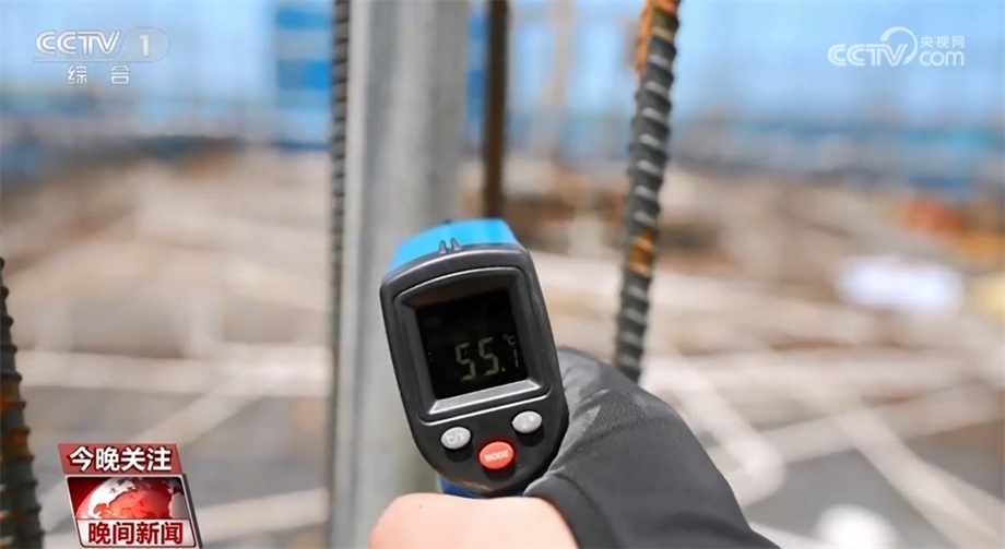 總臺央視記者 張鵬軍:我們來看一看這個(gè)鋼管的溫度,55℃,再來看這個(gè)樓頂木板的溫度,68.5℃。
