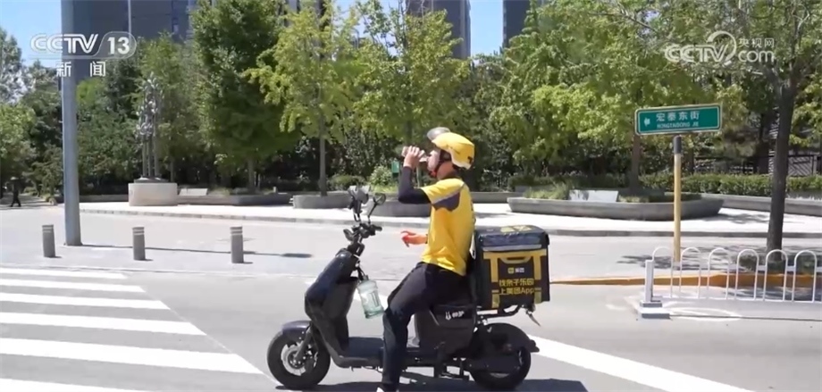 某快遞平臺(tái)北京金地營業(yè)部負(fù)責(zé)人 萬建波:十二點(diǎn)到(下午)兩點(diǎn)是全天最熱的時(shí)候,我們會(huì)避開這個(gè)時(shí)間段,這樣小哥能得到充足的休息,也能將商品及時(shí)送達(dá)。