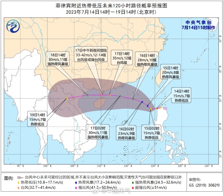 根據(jù)目前的預(yù)報,17日晚些時候,“泰利”會在廣東西部到海南北部沿海登陸,成為今年首個登陸我國的臺風(fēng),登陸時間較常年(1991年-2020年)初臺平均登陸時間(6月27日)偏晚20天左右。之后,它將會繼續(xù)向西移動,并可能登陸越南。胡嘯補(bǔ)充說,在“泰利”背后還會有熱帶低壓系統(tǒng)北上,有可能會影響臺風(fēng)的登陸時間,還需要繼續(xù)觀察。