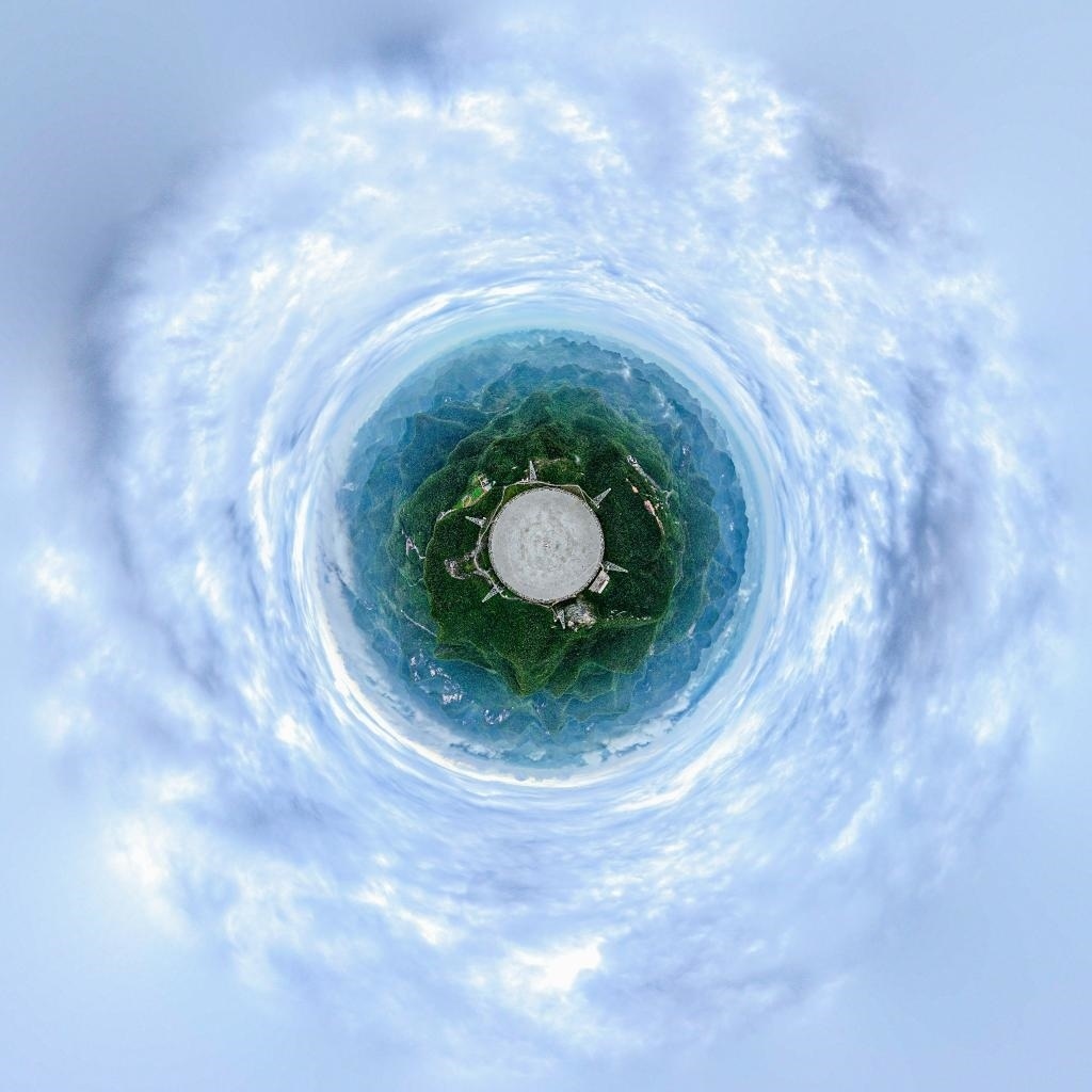 “中國天眼”全景圖(維護(hù)保養(yǎng)期間拍攝)。新華社記者歐東衢 攝