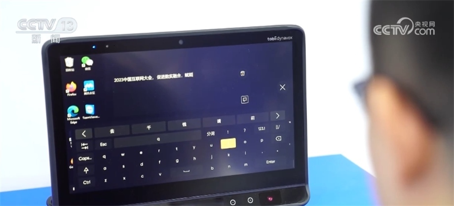 這位技術(shù)人員正在演示“眼動輸入法”,通過眼球轉(zhuǎn)動和凝視來操作電腦完成輸入。這種眼球追蹤技術(shù)通過眼控儀上配備的多組近紅外光源,借助精密算法得到目光注視點坐標位置,從而讓電腦知道眼睛在看哪里,實現(xiàn)用目光操作電腦,取代傳統(tǒng)的鍵盤鼠標。