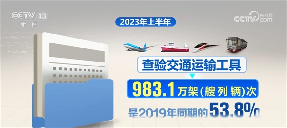 據(jù)國家移民管理局統(tǒng)計,2023年上半年,全國移民管理機(jī)構(gòu)共查驗出入境人員1.68億人次,是2019年同期的48.8%,其中內(nèi)地居民8027.6萬人次,港澳臺居民7490.3萬人次,外國人843.8萬人次(不含邊民);查驗交通運(yùn)輸工具983.1萬架(艘、列、輛)次,是2019年同期的53.8%,其中,飛機(jī)20.4萬架次、船舶19.1萬艘次、火車4.4萬列次、汽車939.2萬輛次。