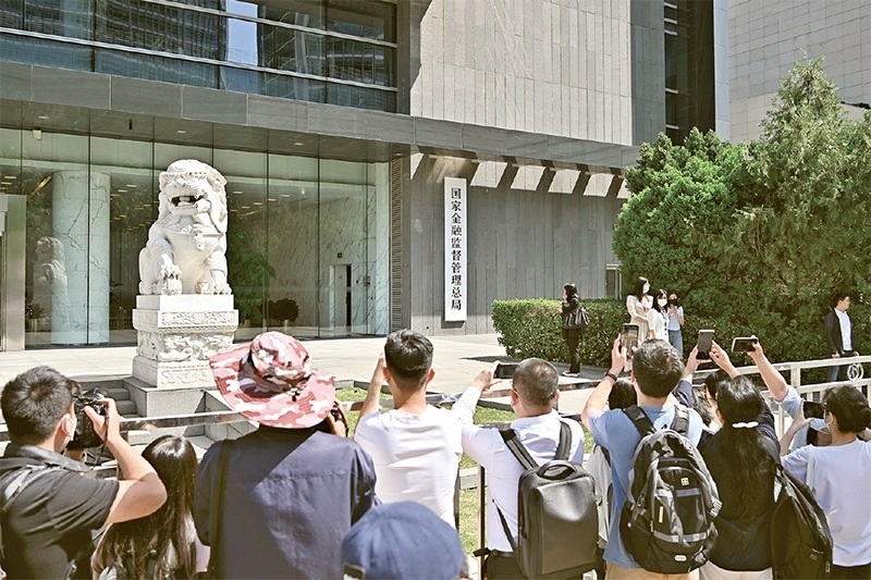2023年5月18日,國家金融監(jiān)督管理總局正式掛牌,我國金融監(jiān)管機構(gòu)改革邁出重要一步。圖為當日媒體記者在國家金融監(jiān)督管理總局門前拍攝。 新華社記者 李鑫/攝