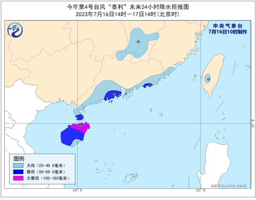 降水預(yù)報(bào):7月16日14時(shí)至17日14時(shí),廣東南部和北部、海南島、福建東南部、江西中部和南部、臺灣島南部等地的部分地區(qū)有中到大雨,其中海南島、雷州半島南部、廣東南部沿海等地局地有暴雨或大暴雨(100-160毫米)。